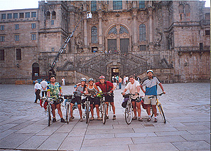 Salimos todos, caminantes y ciclistas a la misma hora. Tenemos presente, que hoy es la última etapa de este Camino 2005. Por precaución, quedamos todos en vernos en la plaza Quintana para pasar juntos el último día. Son las ocho, un poco pasadas, de la mañana, pero no importa, hoy es un día especial y tenemos poca prisa en acabar la etapa. Poco a poco, el grupo va acelerando la marcha. Los más nerviosos, Raquel, Carlos,… se despegan de nosotros un poco, pero no logran alejarse mucho. Los cazamos, porque ellos se dejan. Pasamos Rubial, Pobres, Susana…..y paramos en la ermita de Santa Lucía. Raquel había pinchado, el único pinchazo de todo el Camino. Yo el año pasado pinché en el mismo sitio, ¿casualidad?  Reparada la rueda, seguimos Camino hacia Santiago. Pasamos por debajo del cinturón y entramos en Santiago. Ahora ya lo puedo decir. TODO HA IDO MUY BIEN.!!!! Como veis, llegamos a la plaza del Obradoiro alrededor de las diez de la mañana. Casi solos en toda la plaza. FOTOS, ABRAZOS Y MAS FOTOS.